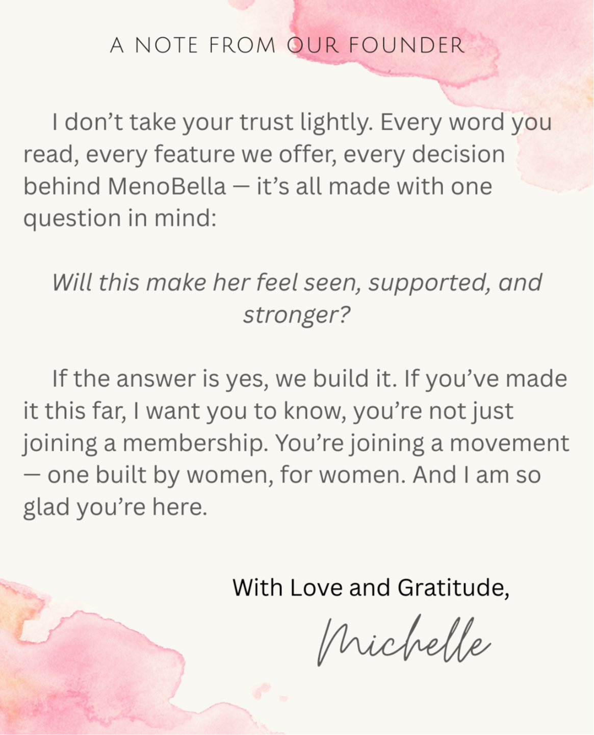 MenoBella is Michelle’s love letter — to the women she’s coached, the ones who’ve cried in silence and smiled in public, and the millions navigating menopause with no map, no support, and no one to turn to.